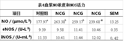 NCG對(duì)母豬血漿N0、eNOS和iNOS的影響見(jiàn)表4。日糧中添加NCG顯著提高了母豬血漿中NO的含量(P<0.05),0.08%NCG組相對(duì)于對(duì)照組和0.04%NCG組有提高eNOS活力的趨勢(shì)(0.05<P<0.1)。